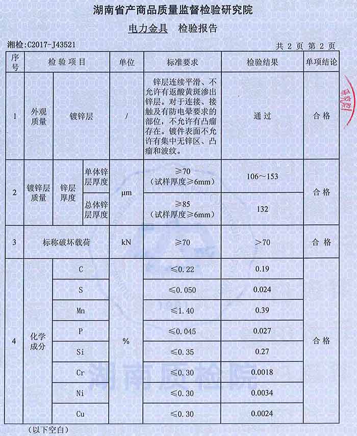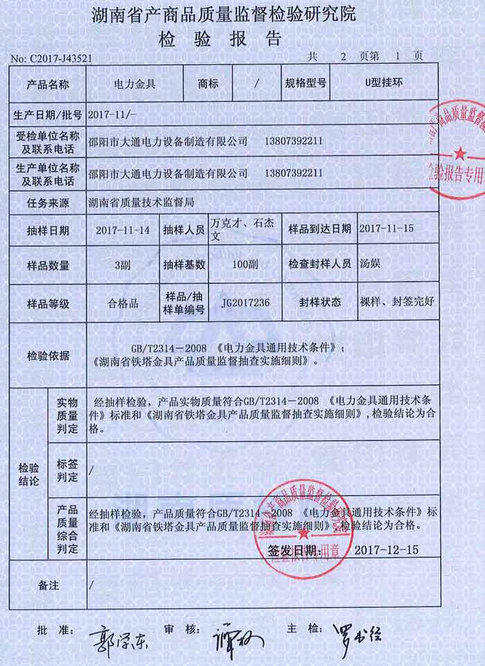 U型掛環(huán)檢驗(yàn)報(bào)告